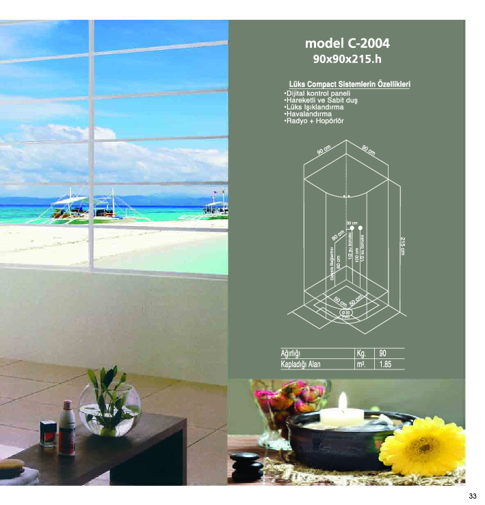 Beyaz Dikdörtgen Duş Tekneli Compact Kabin 90*120*225 h Sağ