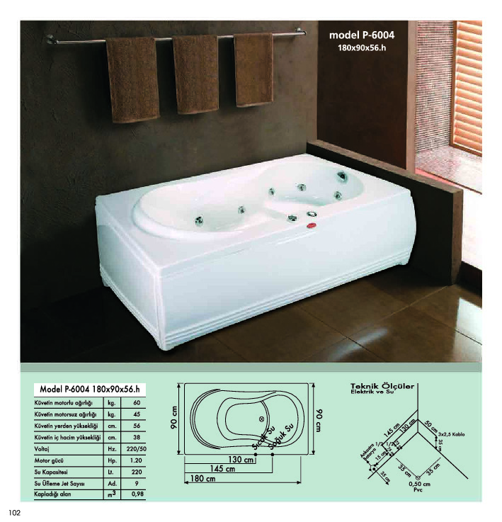 Dikdörtgen Banyo Küveti 180*100*56